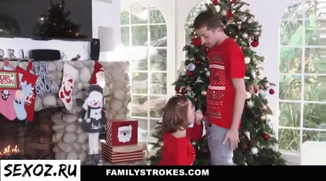 Мужчина женился на очаровательной блондинке и теперь его дочь никак не может поладить с её сыном. Но семейная пара словно не замечает проблем а старается сделать семейное фото перед ёлкой. Молоденькая брюнетка не восторге оттого что ей приходиться стоять рядом со сводным братом потому решает немного подразнить его проведя рукой по члену. Вскоре шлюшка полностью достала пенис из штанов и начала ему мастурбировать пока родители заняты выбором правильной позиции. Сделав фото взрослые удалились оставив парочку молоденьких извращенцев придаваться плотским утехам. И ребята не станут сдерживать свою страсть а сразу начнут трахаться на ковре под новогодней ёлкой.